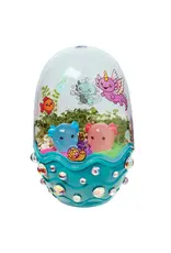 Contents Include: plastic egg terrarium, potting mix, water dropper, sticker sheet, coloured sand (pink, purple, green), white gravel, 2 axolotl glow figures.